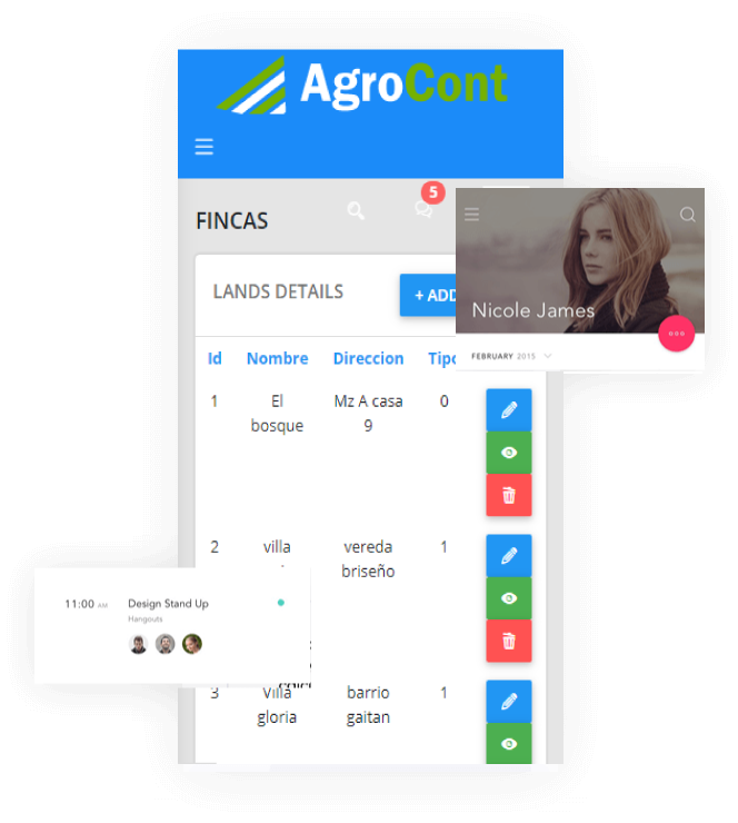 Calendarios de eventos como: siembra, podas, irrigación, fertilización, control de plagas y cosecha